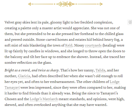 When I decided to go ahead with a full rewrite, I needed to make sure it was really the story I wanted to tell, not just some words on the page that made me feel good (that’s important too, but not the point). I want Espe to find her path, right or wrong, through trial and error. I spoon-fed her everything in the old draft; in the new one, she’s feeding me 😂.