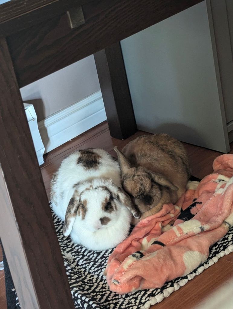 Sammi and Dany are 2-1/2 year old Holland lops, and are sisters from the same litter. We got them as a Christmas gift to ourselves when they were seven weeks old, and we love them so very much. Their personalities are spectacular, and have so much life to them. You’ll see them a fair bit in these newsletters.